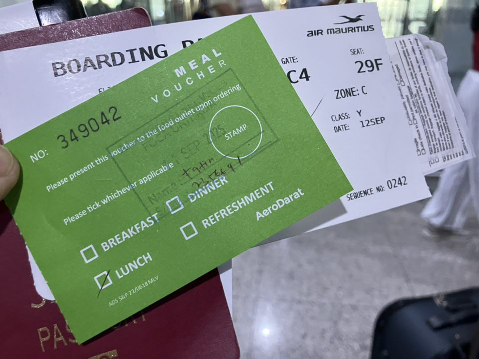 降機した乗客には5hの遅延と新たな搭乗時間が告げられ、各々は35マレーシアリンギット(約1200円)のミールクーポンを手にターミナルへと消えていきます…